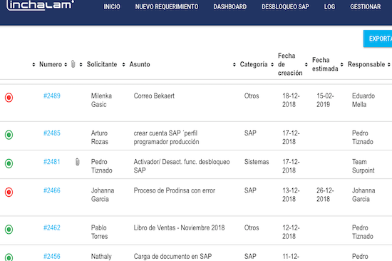 Plataforma de Ingreso y Tracking de Requerimientos TI, con opción de interacción con usuarios, gestión documentos, y status.